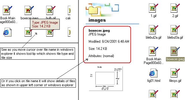 In MS-Windows as you move mouse pointer/curser over file name (in windows explorer) it will show the tool tip in which you will get the information about file.